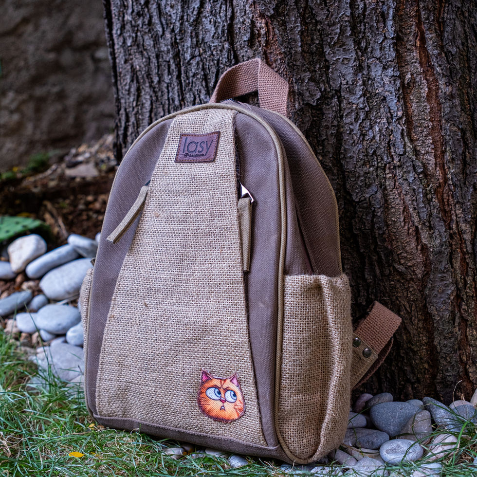 DELİ KEDİ - Su Geçirmez Mumlu Kanvas Sırt Çantası (El Yapımı)